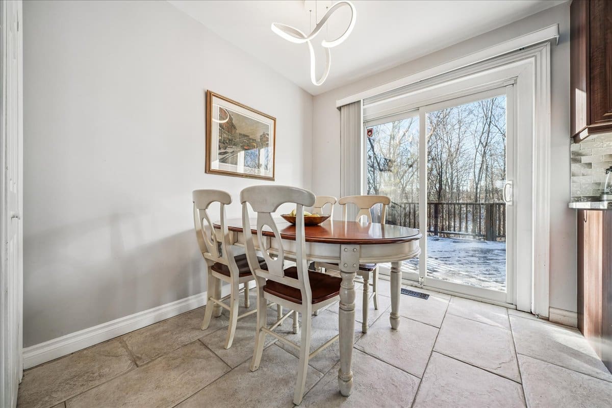 Beautiful pie-shaped ravine lot, widening to 80 feet across the back and offering unmatched privacy and tranquility. Located on a quiet cul-de-sac, this home features excellent curb appeal, a double driveway that comfortably parks four cars, and a heated 1.5-car garage. Inside, you will find a 4-level home with an open-concept living/dining area and kitchen. The kitchen boasts a center island with bar seating, granite countertops, stainless steel appliances – including a gas stove, an eat-in breakfast area, and a walk-out to an oversized deck overlooking the ravine.