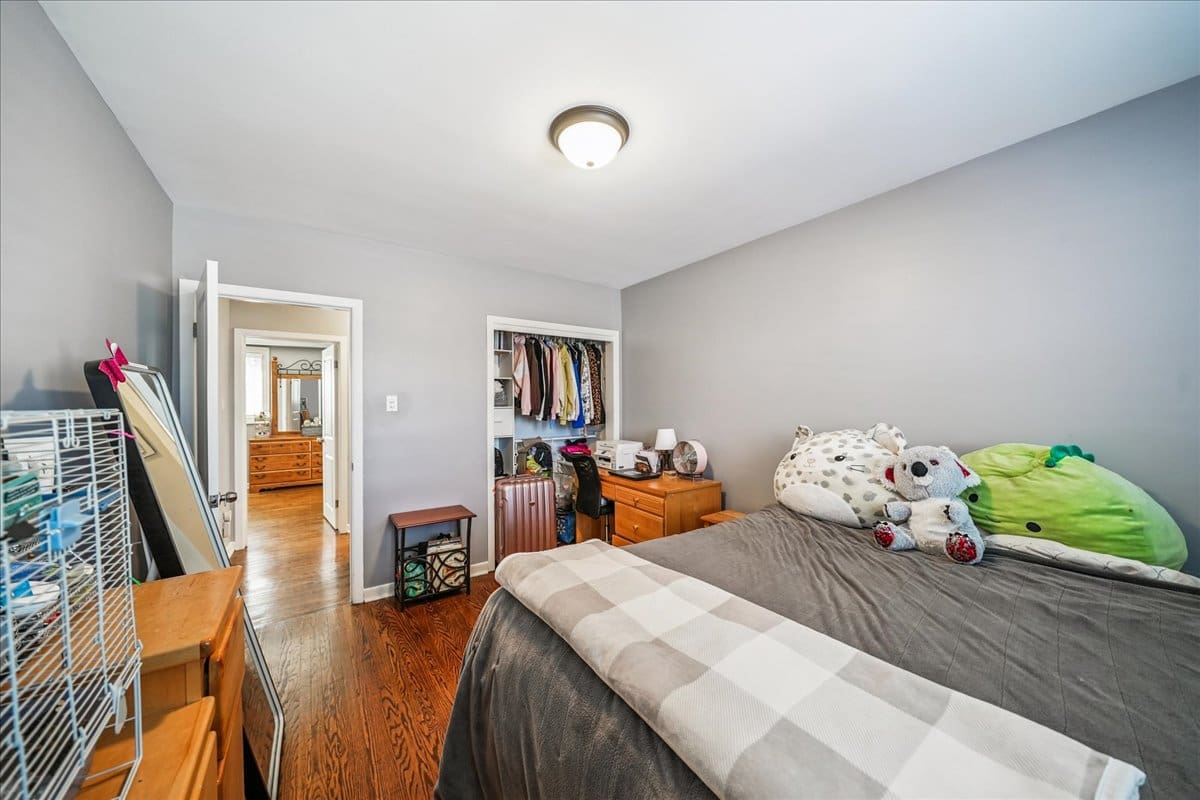 | Bedroom | Upper | 5.05 x 3.1 | Hardwood Floor Closet California Shutters |