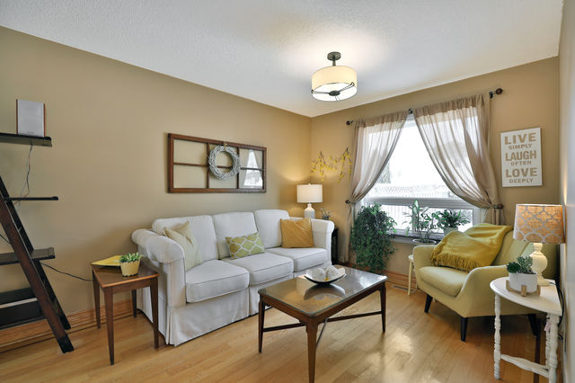Nice lot with no sidewalk allows for extended double-driveway and parking for 4-cars. Beautiful custom kitchen with new stainless fridge, gas stove, Quartz counter-tops, eat-in and walk-out to newer deck. Nice size yard! Combined living and dining with hardwood floors, updated main washroom, laminate floors in all bedrooms.