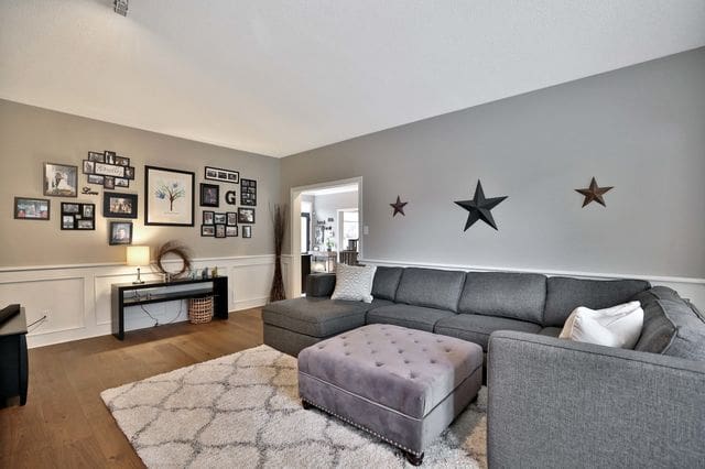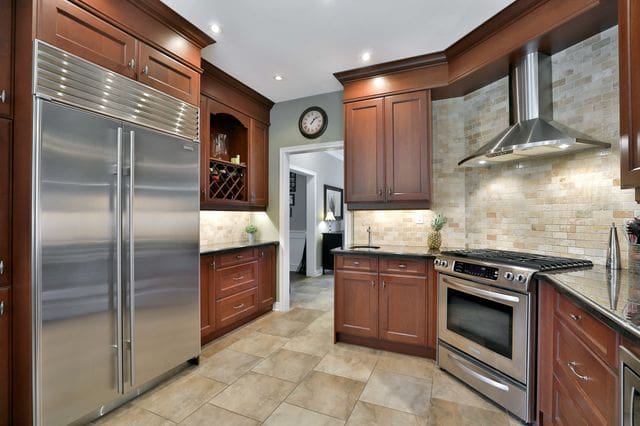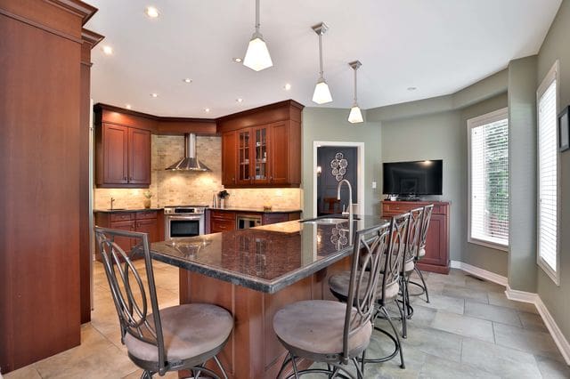 Gorgeous entertainer’s kitchen with huge breakfast island, Granite counter-tops, stainless steel appliances and Double-French-Door walk-out to amazing 3-tier deck. Cozy family sized family room with beautiful stone fireplace and Wainscoting. Living and dining with new wide Plank hardwood floor; crown moulding and Bay window. Master Bedroom Getaway with 5-piece en-suite and walk-in closet. Fabulous finished basement rec room with English style wet bar, 5th bedroom/office, exercise room and cold room.